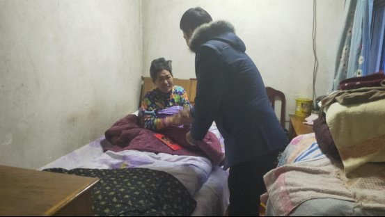 “謝謝...謝謝...,感謝你們愛(ài)心企業(yè)還能想到我...”困難群眾凌世桂含著眼淚說(shuō),凌世桂家住商北,丈夫2015年因骨癌去世,夫妻二人收入微薄,為治病更是負(fù)債累累。屋漏偏逢連夜雨,沒(méi)幾年,凌世桂本人又查出胃癌,2020年全胃切除,現(xiàn)長(zhǎng)期臥床需要護(hù)理,每月1000元的退休金遠(yuǎn)不夠藥費(fèi)。安徽國(guó)泰建筑集團(tuán)了解到他家情況后,董事長(zhǎng)張自州一行,帶著5000元慰問(wèn)金上門看望。