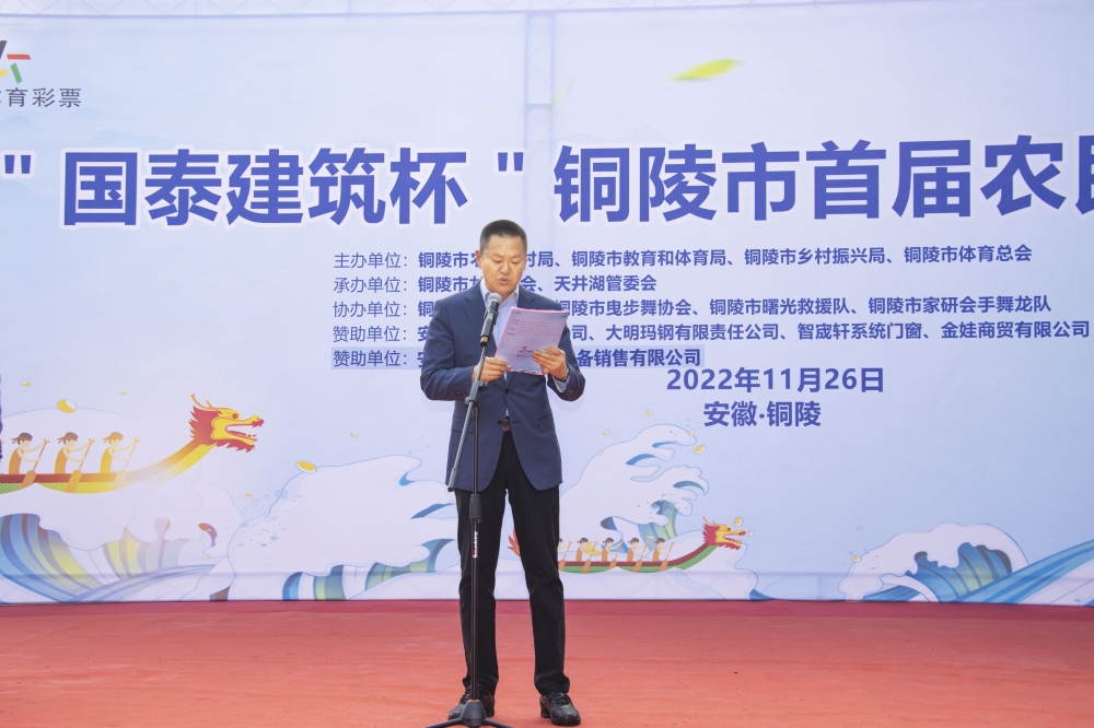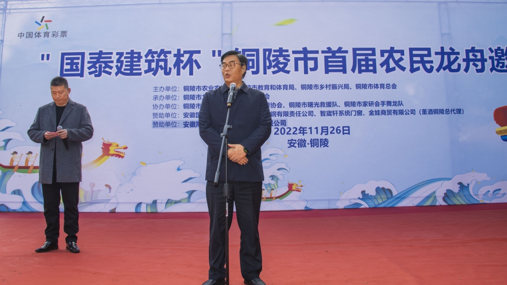 銅陵市人民政府副市長吳強(qiáng)、副秘書長張志遠(yuǎn)、市農(nóng)業(yè)農(nóng)村局局長程志華、國泰建筑董事長張自州、市龍舟協(xié)會(huì)會(huì)長柯春生、龍舟錦標(biāo)賽世界冠軍曹立娜等出席開幕式。