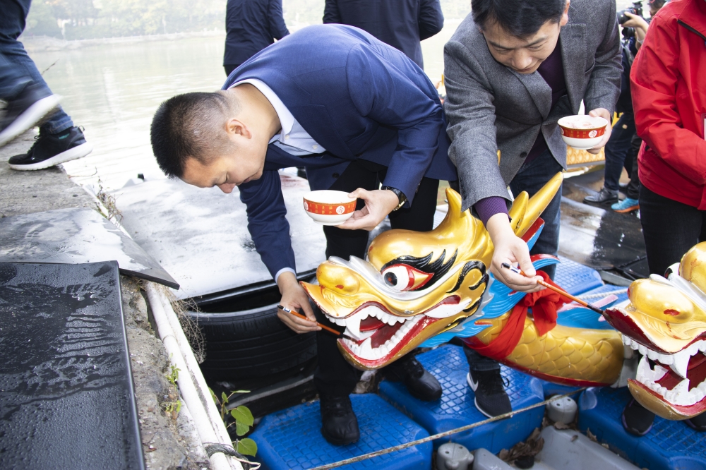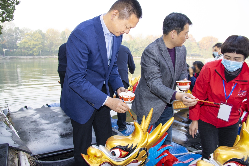正式比賽之前,吳強(qiáng)市長與張自州等共同為龍舟點(diǎn)睛,祈福國泰民安,傳遞萬家平安的美好愿望。