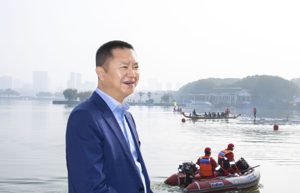 國泰建筑董事長張自州進(jìn)行龍舟點(diǎn)睛儀式