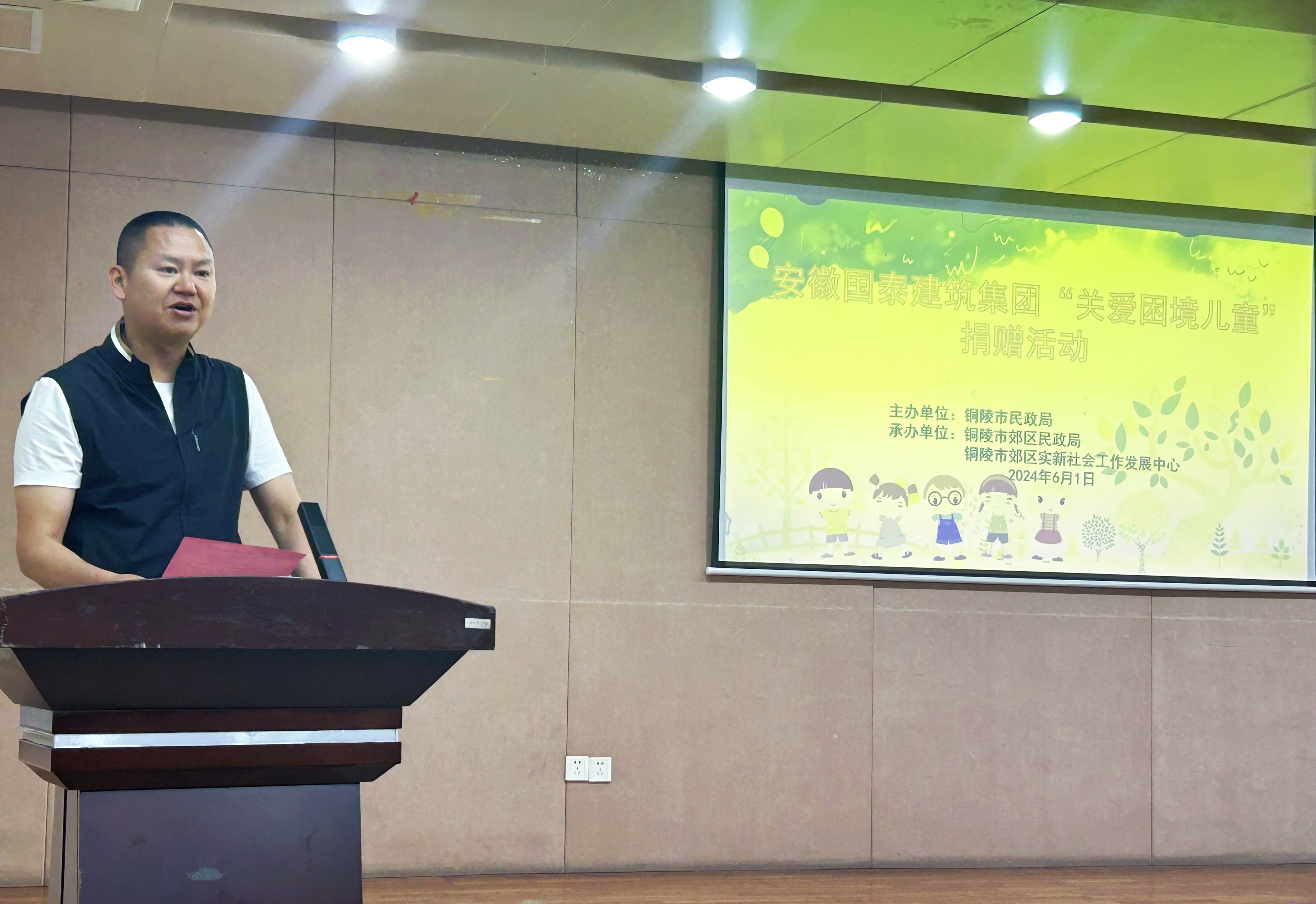 捐贈活動上,國泰建筑董事長張自州說:國泰建筑致力于企業(yè)發(fā)展,同時不忘初心,牢記社會責(zé)任,愿意在關(guān)愛兒童成長方面盡自已的微薄之力。