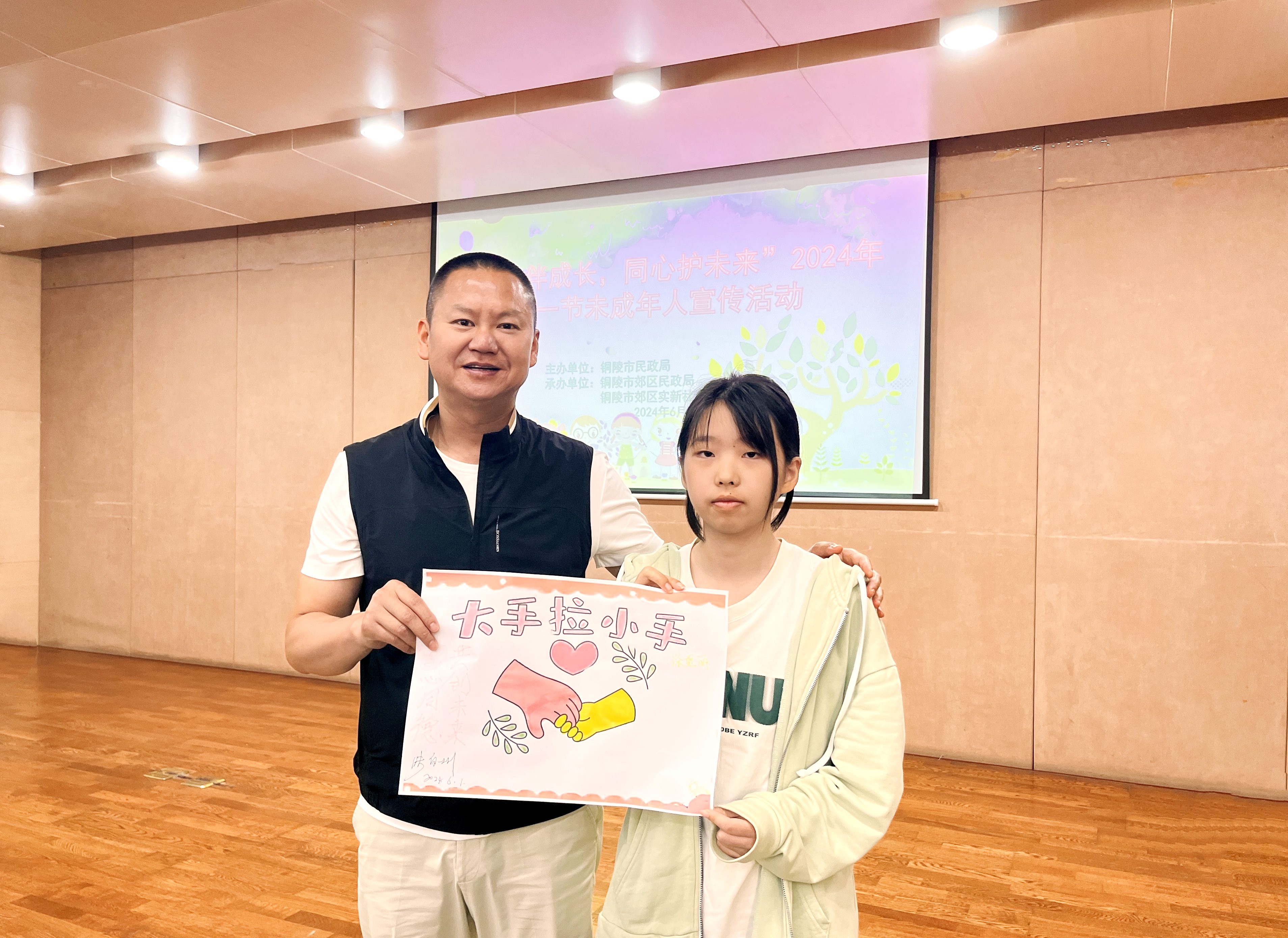 最后,參加本次捐贈活動的領(lǐng)導(dǎo)同受捐兒童一起共同完成“大手拉小手”繪畫,并送上祝福。