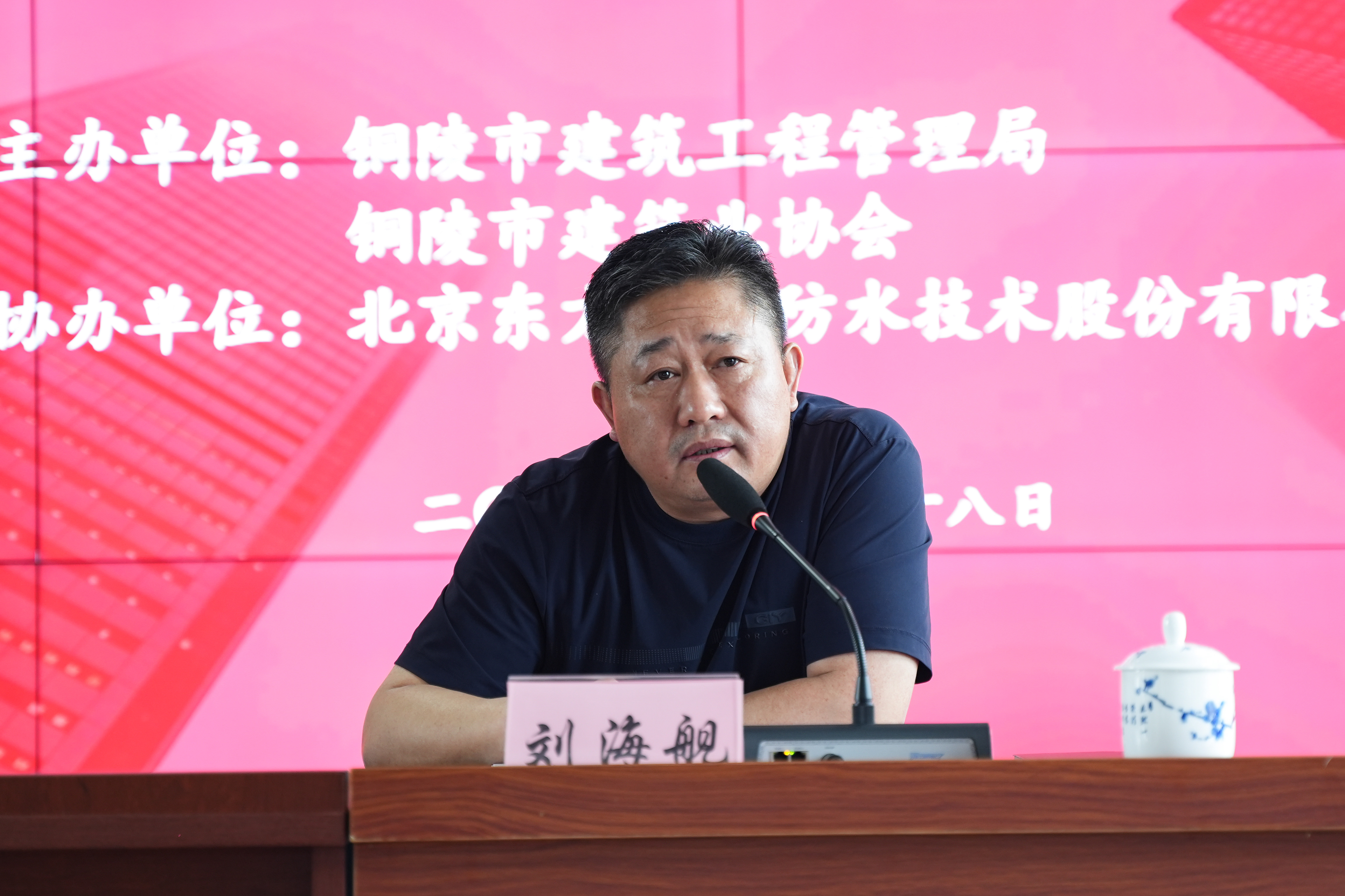 公司張四兵總經(jīng)理在培訓(xùn)前致辭,歡迎各位領(lǐng)導(dǎo)、專(zhuān)家和行業(yè)同仁蒞臨國(guó)泰建筑。市建工局劉海艦總工在講話中,從行業(yè)管理和規(guī)范執(zhí)行角度出發(fā),強(qiáng)調(diào)了《建筑與市政工程防水通用規(guī)范》在保障建筑工程質(zhì)量、規(guī)范市場(chǎng)秩序等方面的重要性,并對(duì)培訓(xùn)工作提出要求。