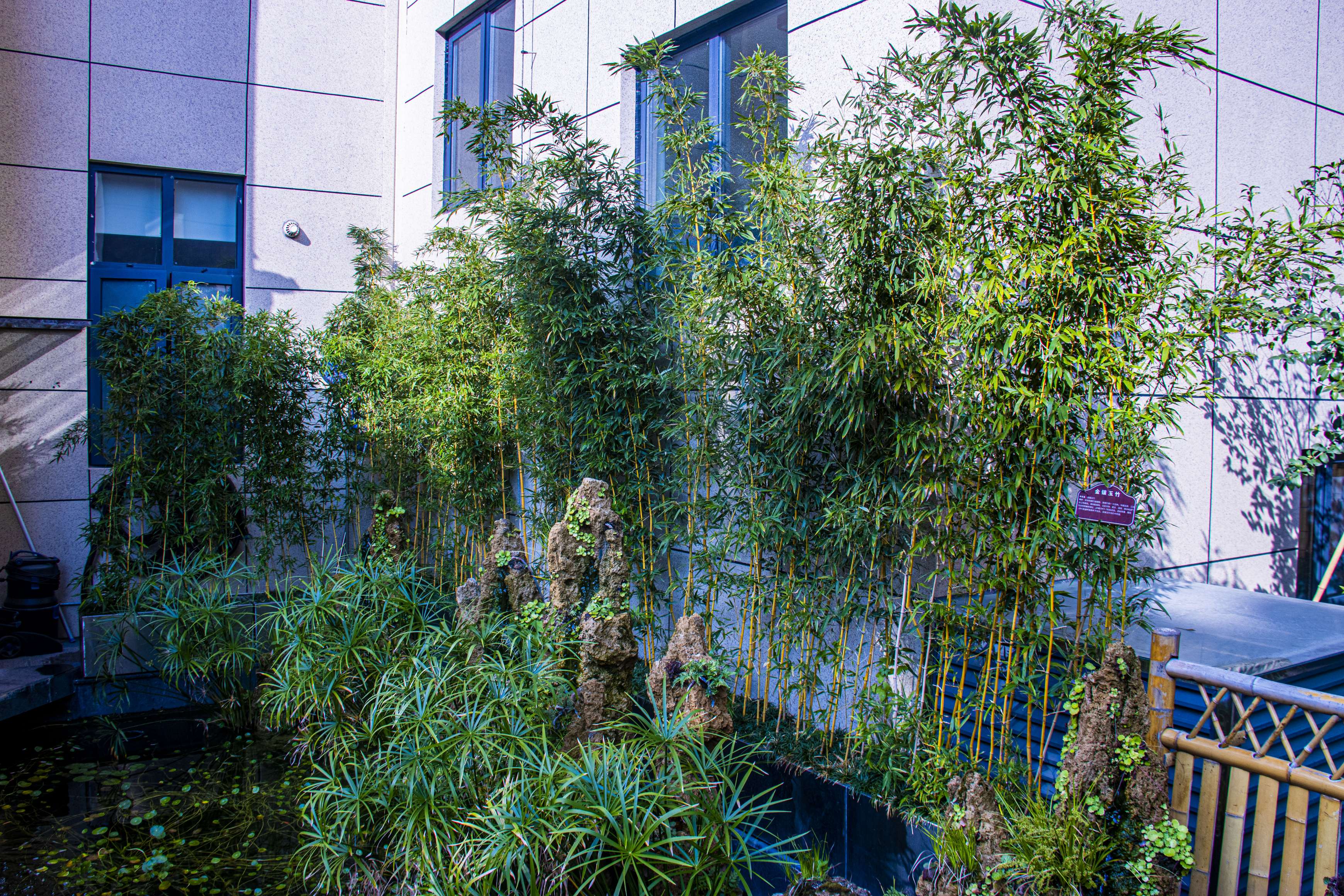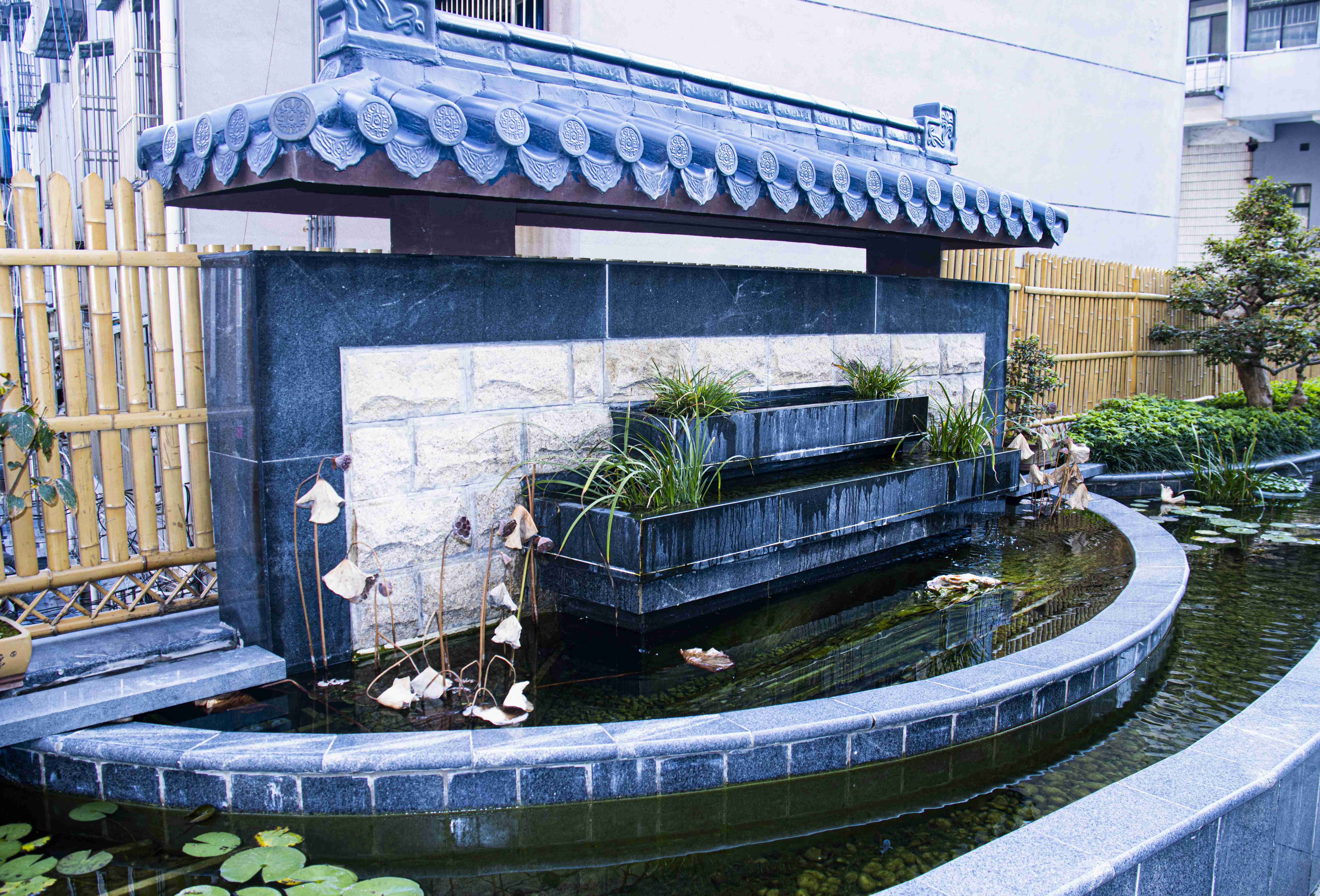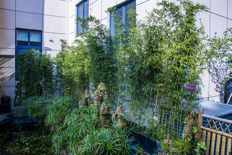 360度循環(huán)瑤池,水中點綴著睡蓮、通心草、蒼蒲,構(gòu)建成一個完整的生態(tài)鏈,可謂養(yǎng)魚先養(yǎng)水。養(yǎng)水便得養(yǎng)一口“活水”。變則通,通則達(dá)。池水不斷循環(huán)更新,一眼便能望透湖底。魚兒清晰可見,蓮根都?xì)v歷在目。不僅僅與正念園的寓意相契合,同時給人以清風(fēng)正氣之感。