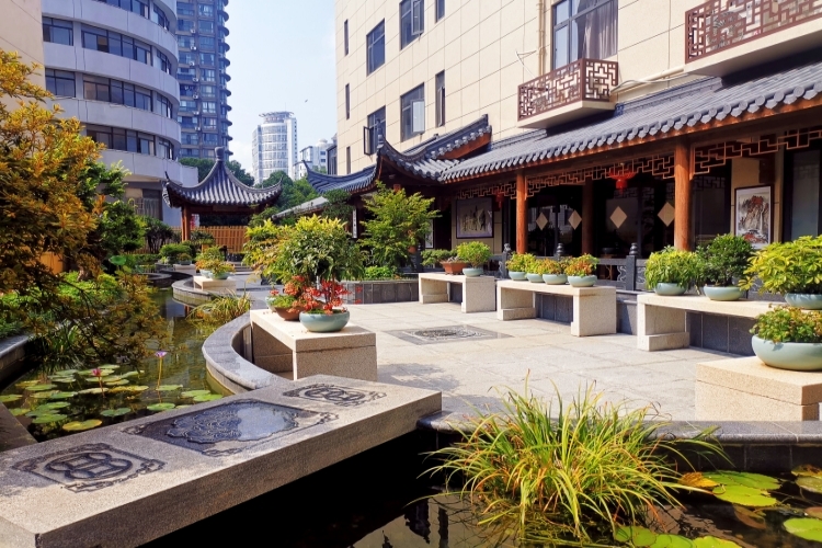 美花,秀竹,名畫,水榭。鬧中取靜。彷佛一幅徽派畫卷,這畫中每一筆都由國泰建筑董事長張自州提筆雕綴。輕踏入正念園的一步,便猶如置身于古風(fēng)江南美景當(dāng)中??蓢@道,此景只應(yīng)天上有,驚為鬧市中獨秀!